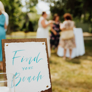 What I Did: I was actually at this wedding (this was my husband's cousin's wedding)! Shelter Island is literally one of the most beautiful places. Ever. I fell in love with it and I cannot wait to go back. The wedding was at the family’s home which had been passed down for decades. The backyard was GIANT — perfect for tenting a wedding. Oysters were a big part of this wedding — and they were the best oysters I’ve ever had (even better than NOLA). For their invitations, I included the oysters at the top. All of their flowers were blue and white Hydrangeas, so I also tied that in. We kept it simple and just did one card with jute tied around it to bring in the beach vibe. Since the wedding was in the backyard, we wanted to tie in the neutrals of the trees (there were trees everywhere). I did a light stained wood for the welcome sign, timeline sign, and all of the table signs (which were named after beaches on Shelter Island — these were my fave). For the seating chart, I did oyster shells that were hand painted gold and white, with the names in dark blue. The “Find Your Beach” sign that went with it was blue calligraphy on deckled paper to break it up a bit since there were already 2 large wood signs. I loved this wedding because everything they used was local. The candles, the driftwood, the oyster shuckers. It was absolutely beautiful.